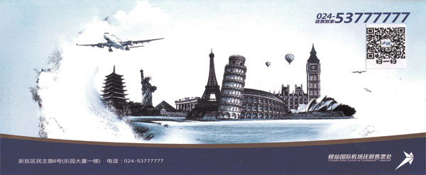藍翼航空作為撫順最大的機票代理機構,每年售出航空機票十萬余張,因此機票票袋有很強的市場覆蓋率。